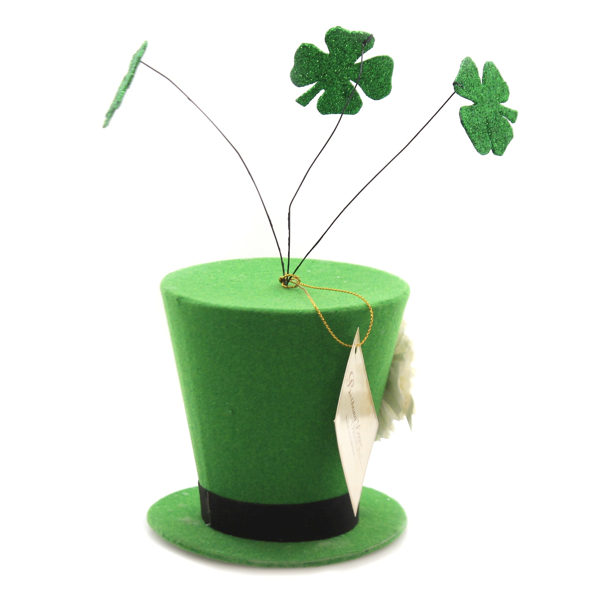 Bring some festive cheer to your home with the Luck of the Irish décor by Bethany Lowe. This 8.5-inch piece features a charming green felt hat adorned with a gold buckle and glittered four-leaf clovers. It’s a fun and easy way to add St. Patrick’s Day spirit to any space, whether placed on a side table, desk, or entryway.