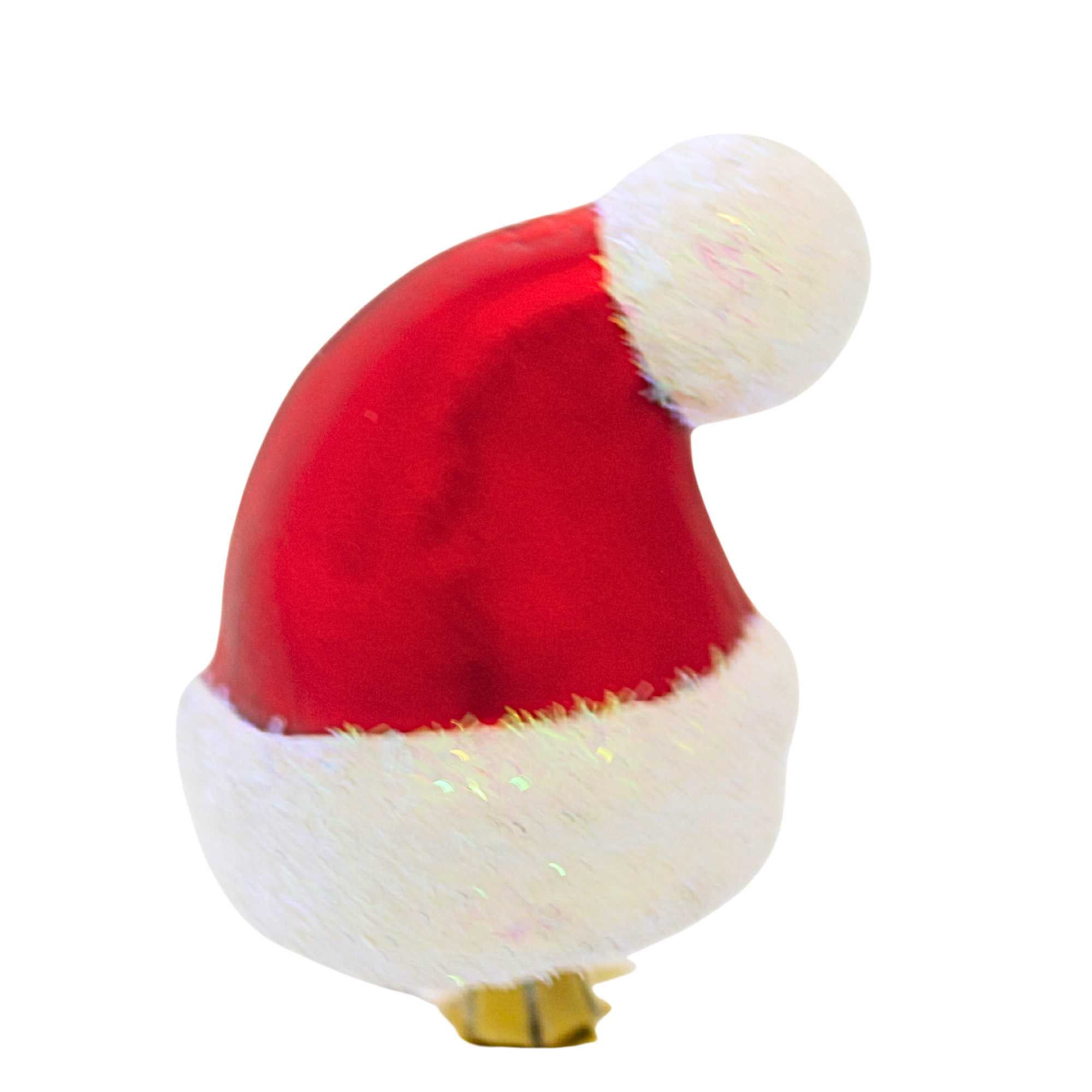 Add a playful holiday accent to your decorations with this Santa Hat Clip-On glass ornament. Standing 2.75 inches tall, the cheerful red hat features a sparkling white glittered band and pom that captures the magic of the season. Made in Poland and carefully hand painted and hand glittered, it reflects beautiful craftsmanship and festive charm. Because each ornament is handcrafted with care, slight variations in color and glitter details make every piece uniquely special.