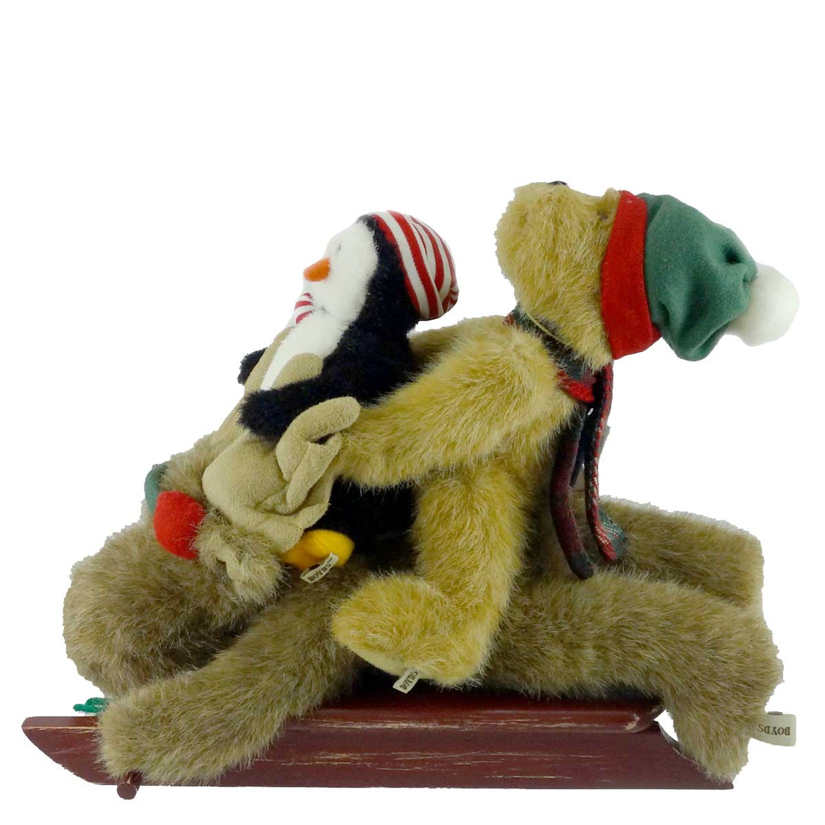 - This trio of frosty friends (10" Moose, 8" Bear, & 5" Penguin) is heading out for a day long adventure in the cool Winter's air. They've got their sled, and are dressed with hats and sc
