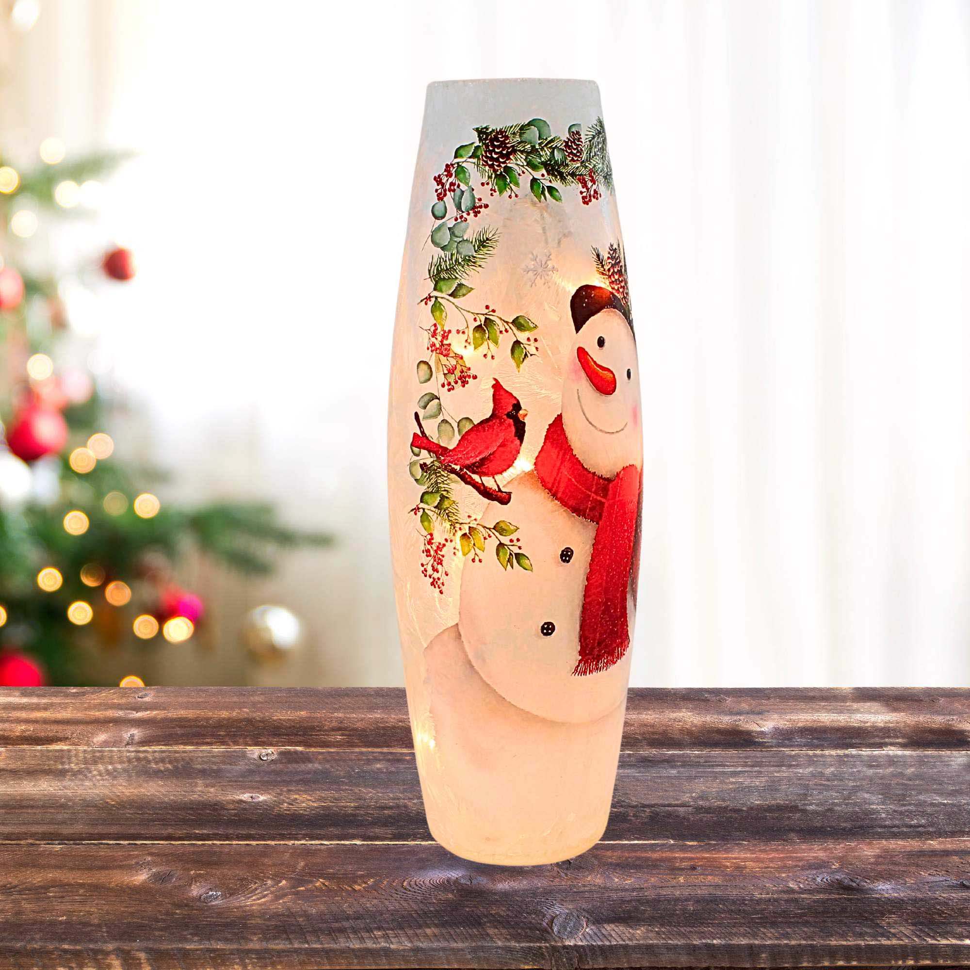 (65417) Happy Snowman Pre-Lit Lg Vase