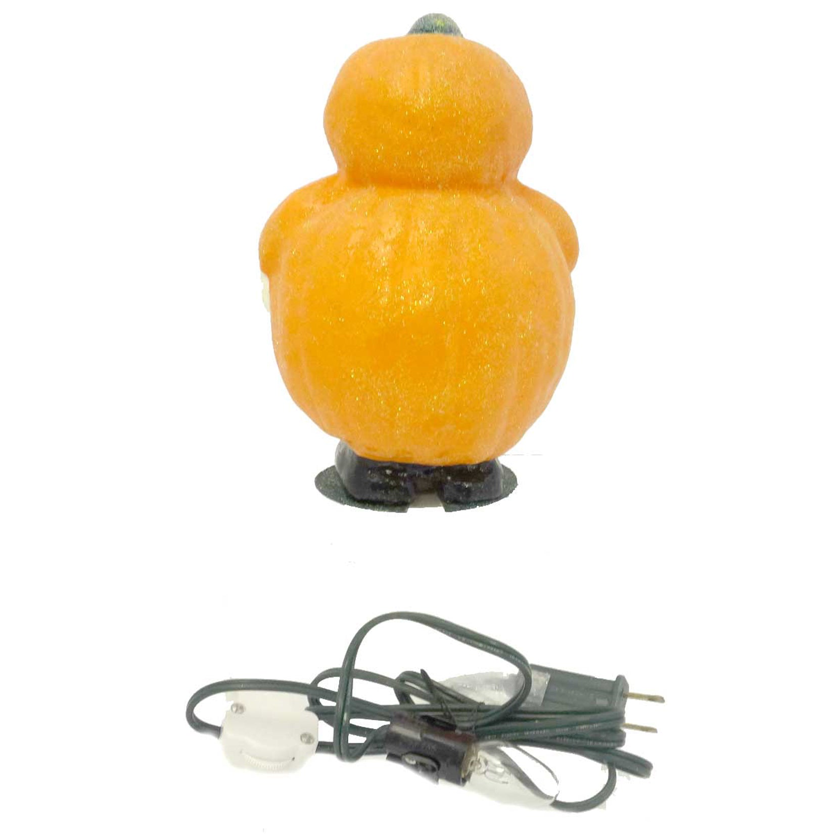- Papier mache/plaster candy container made by Ino Schaller Family Exclusively For Christopher Radko. This double stacked orange pumpkin has a cut out face with a big smile outlined in red, black shoes and white ha