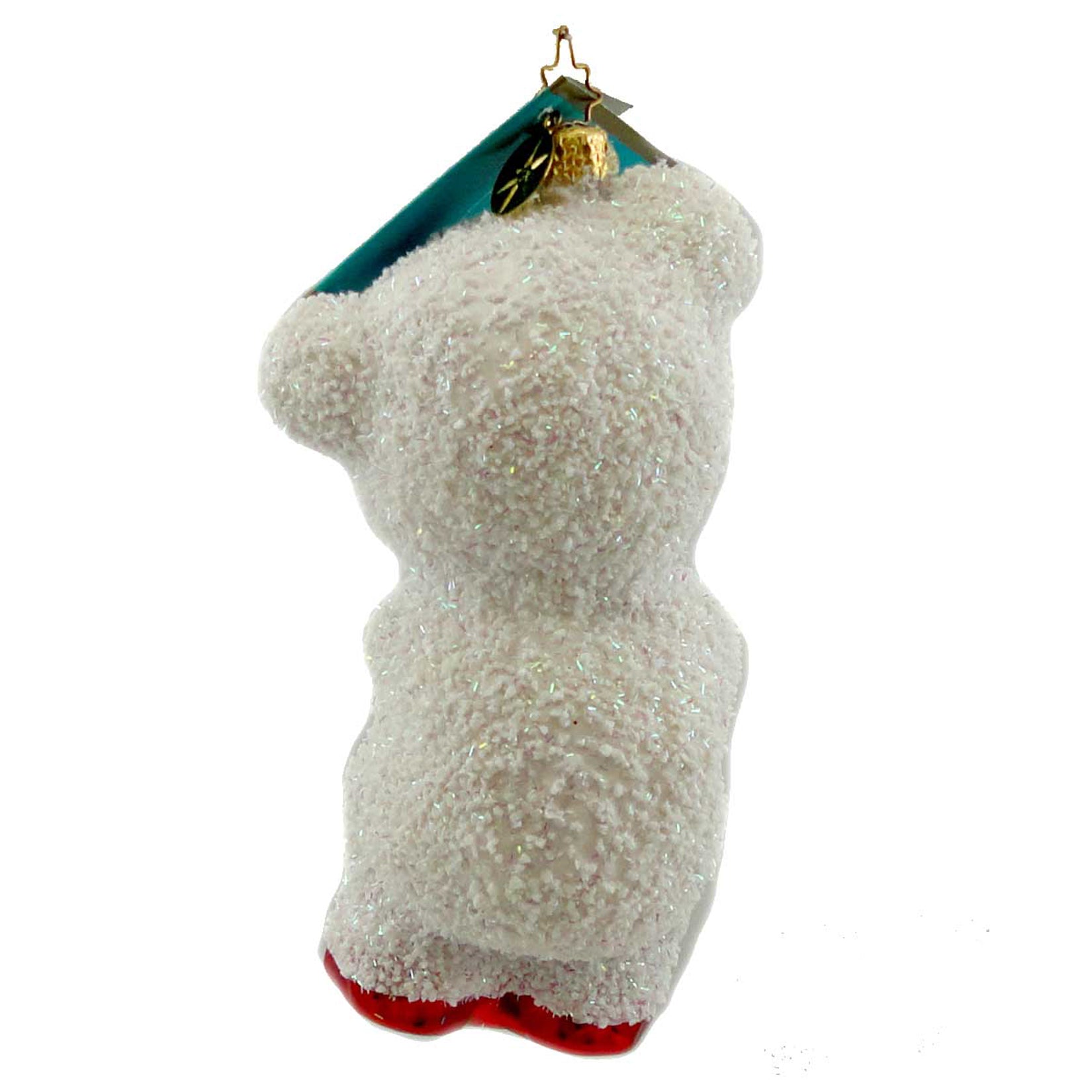 - White bear with white flocked coat and red shinny paws