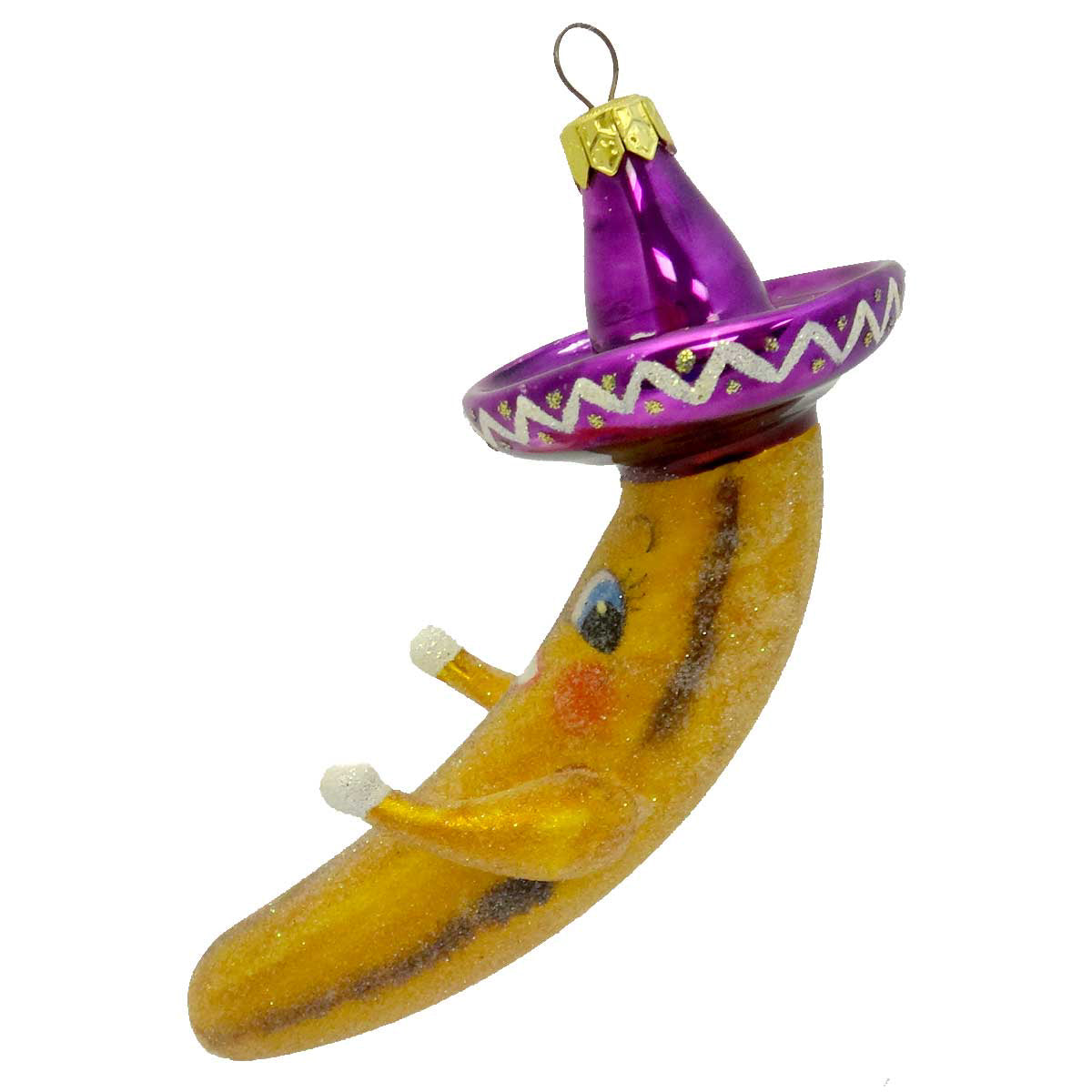 - Frosted banana wearing purple Mexican hat
