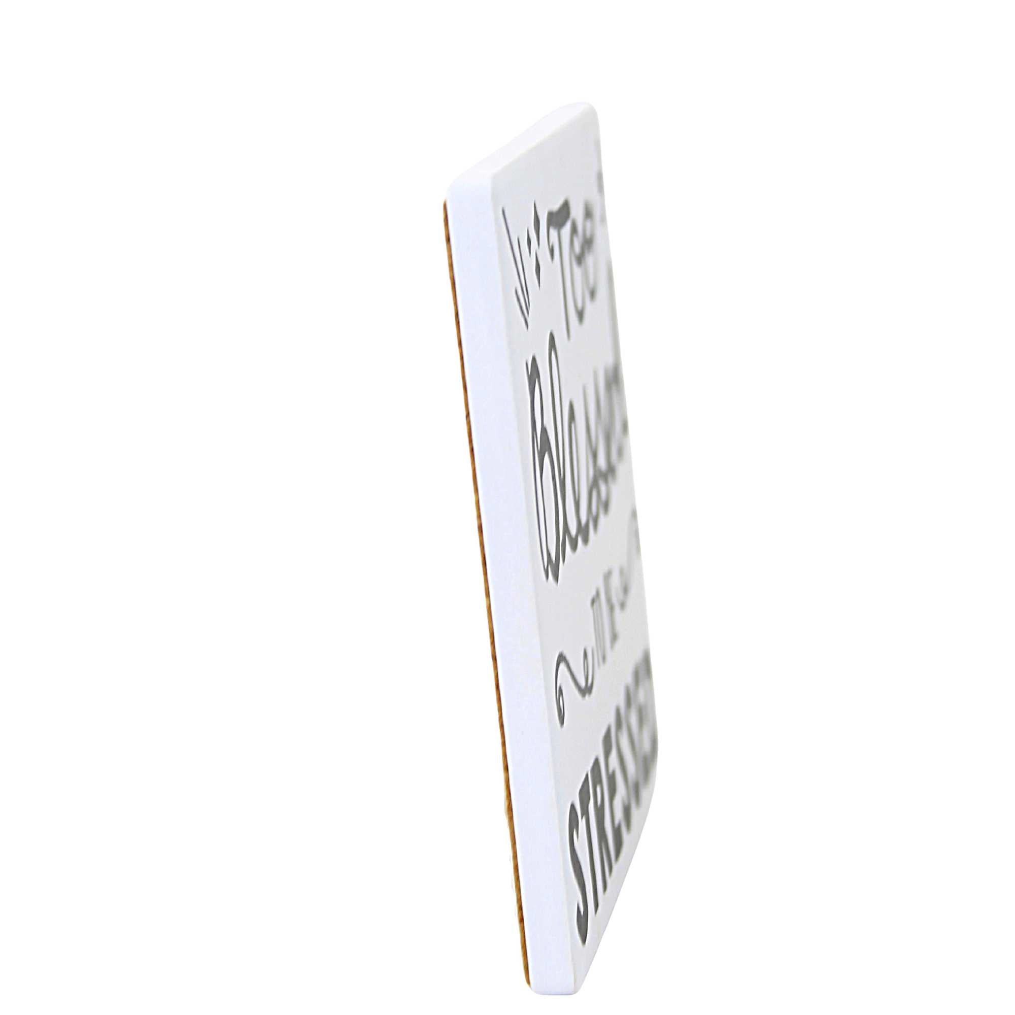 Add Some Fun Flair To Your Table And Keep It Clean With This Playful Coaster From Our Name Is Mud. This 4 Inch Water Absorbing Stoneware And Cork Coaster Reminds Us That We Are Blessed, So Skip The Stress And The Mess!