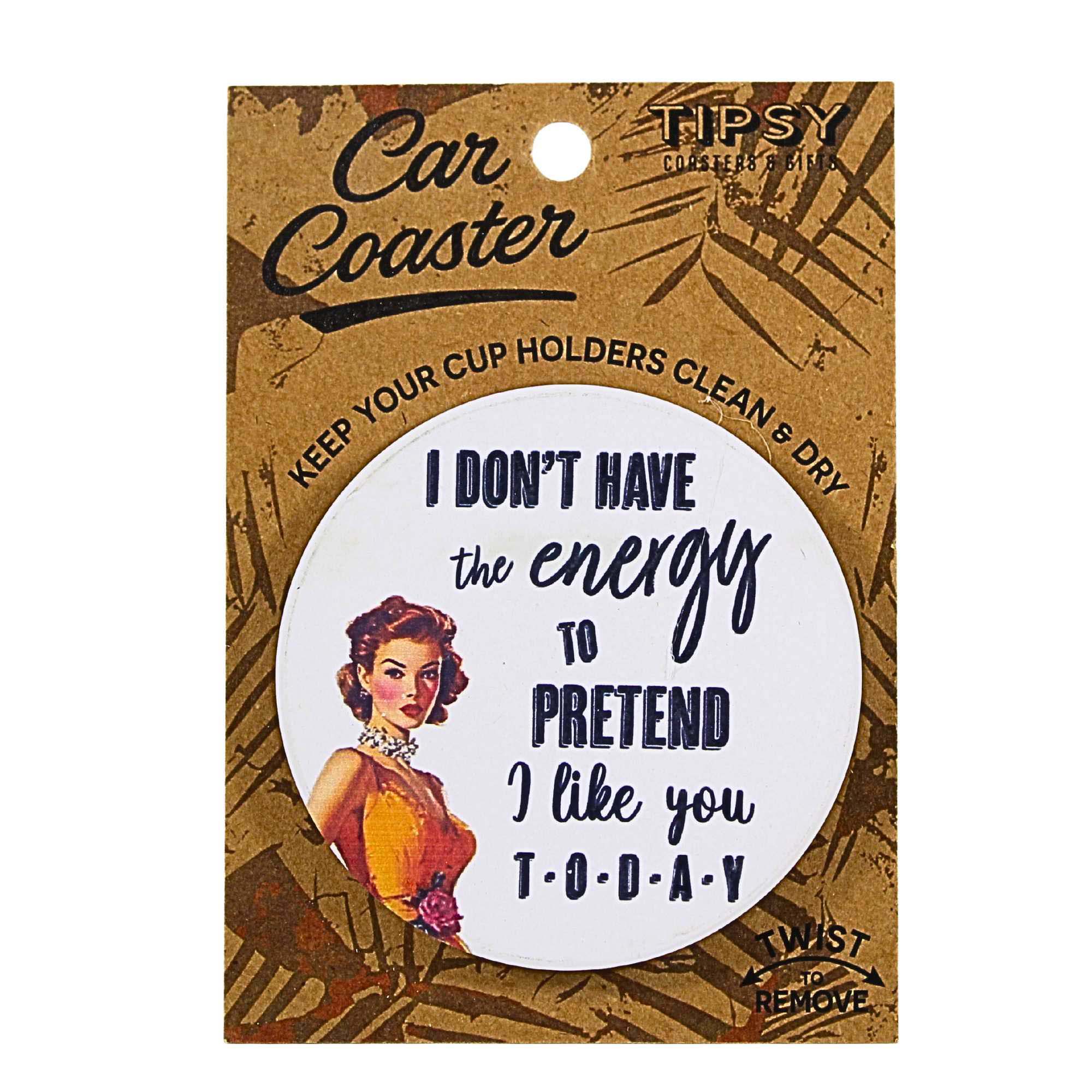 Add a little humor to your daily drive with the Tipsy Coasters I Don't Have The Energy car coaster. This cream ceramic coaster features bold black lettering that brings personality and laughs to your cup holder while keeping it clean and dry. Designed to catch drips, soak up spills, and absorb condensation, it’s the pit crew your car didn’t know it needed. At 2.75 inches, it fits most standard cup holders and makes a fun, relatable gift for friends, family and coworkers.