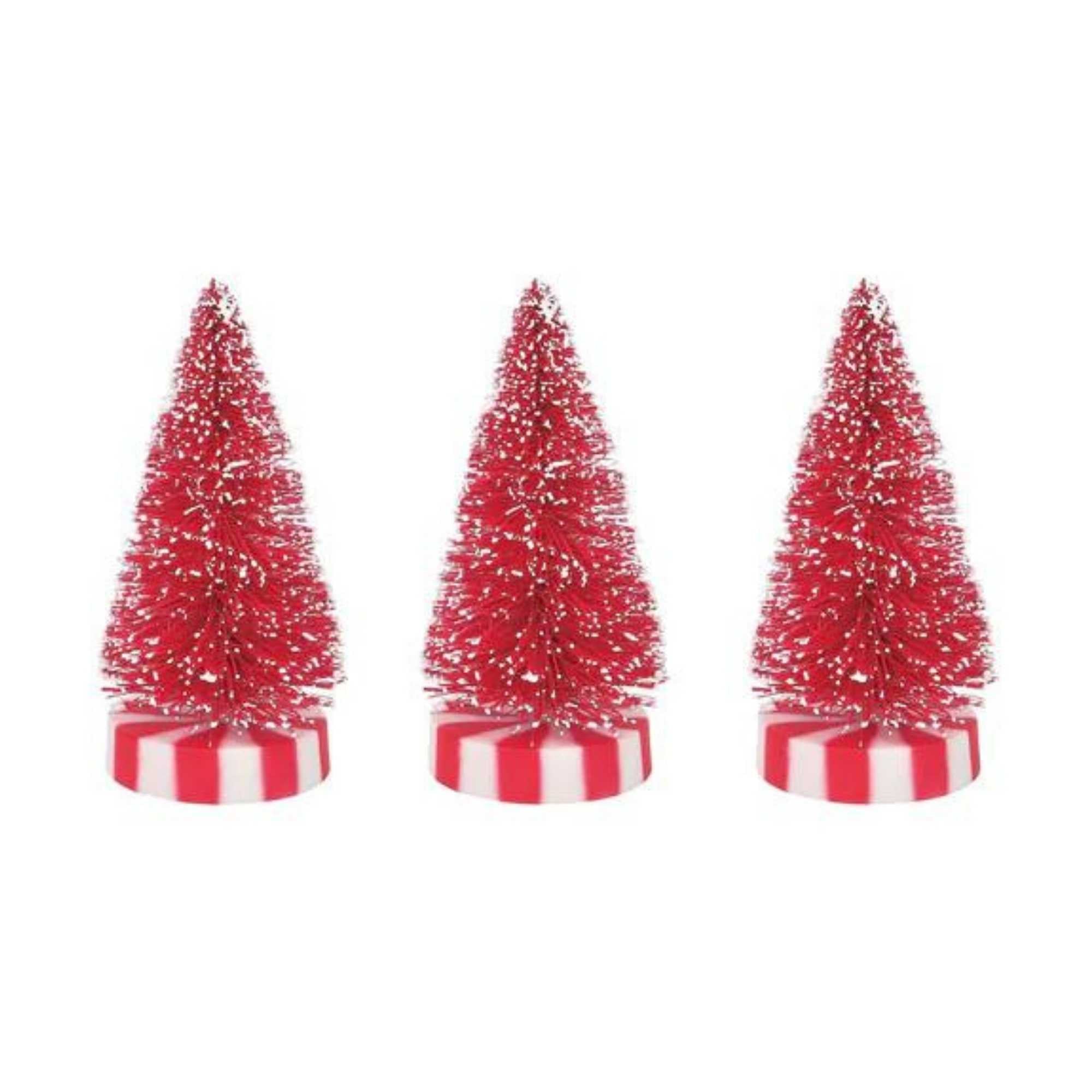 A Candy Cane Forest Of Five Red Sisals In Two Sizes, Lightly Flocked Stands On A Red And White Striped Base.