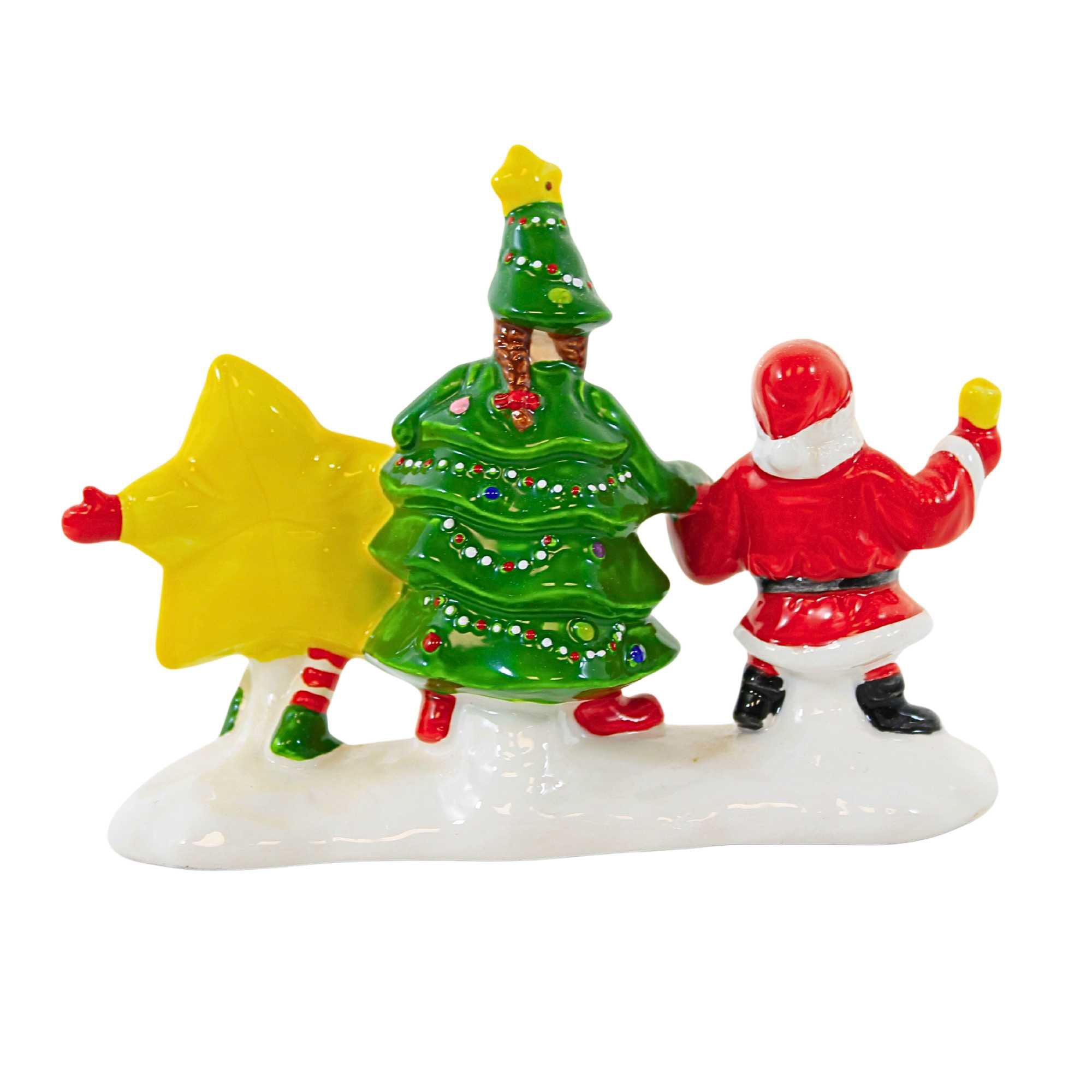 Add some festive cheer to your Christmas village with our "We're Going To A Christmas Pageant" ceramic accessory from The Original Snow Village series. This delightful piece features three children dressed up as either Santa, a decorated Christmas tree, or a star! Perfect for creating a playful and whimsical holiday scene.