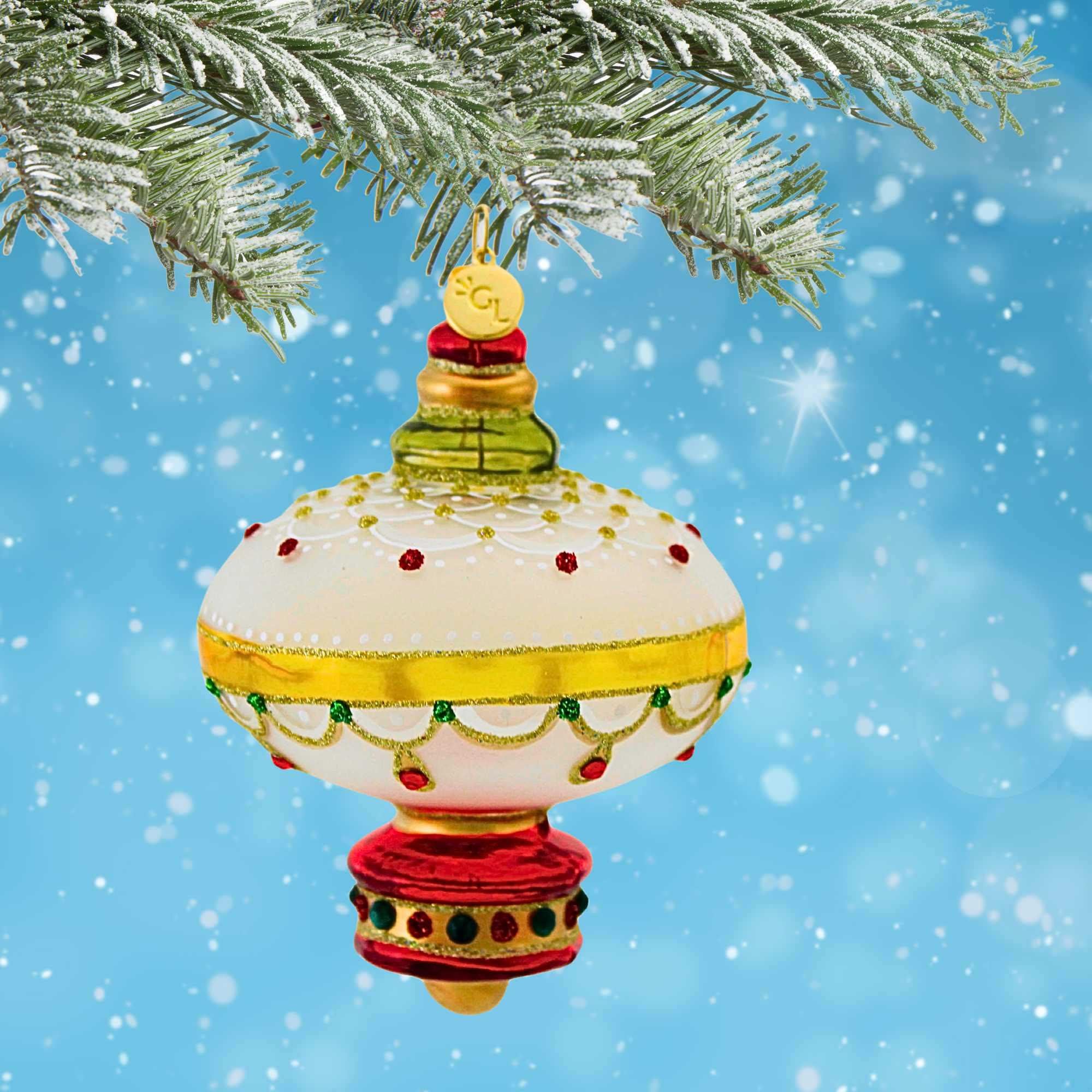 Glitter Labs Translucent Onion Dome Drop is a hand blown glass ornament that adds timeless elegance to your holiday or decorative display. Crafted by skilled artisans, this 4.50-inch ornament features high end crystals, ultra fine glitter, and hand painted details . The soft glitter and sparkling crystals catch the light beautifully, making it a spectacular focal point. Whether for your Christmas tree or as a year-round accent, this piece combines luxury with artistic flair in a design that’s both classic and striking.