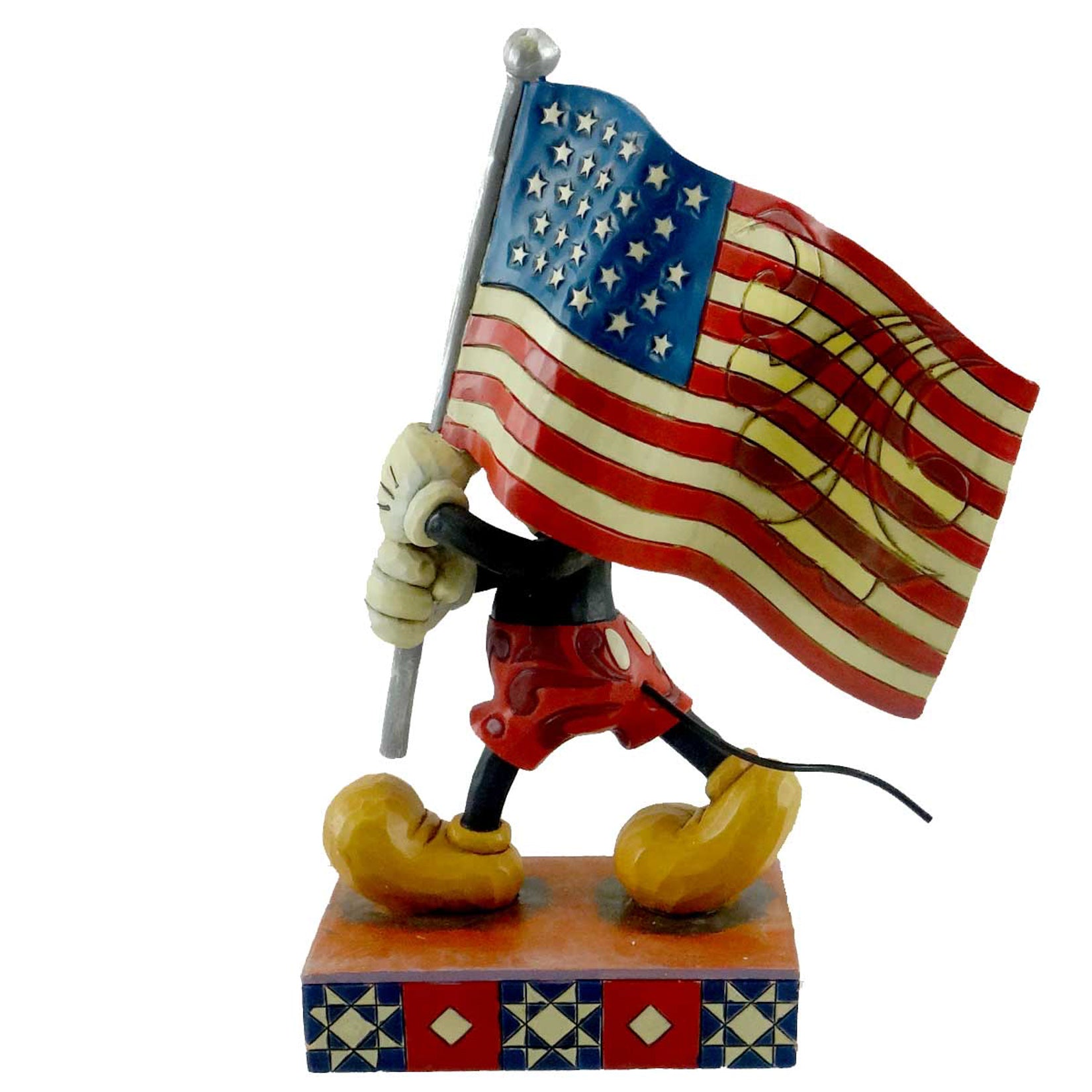 - Micky Mouse walking carrying an American Falg