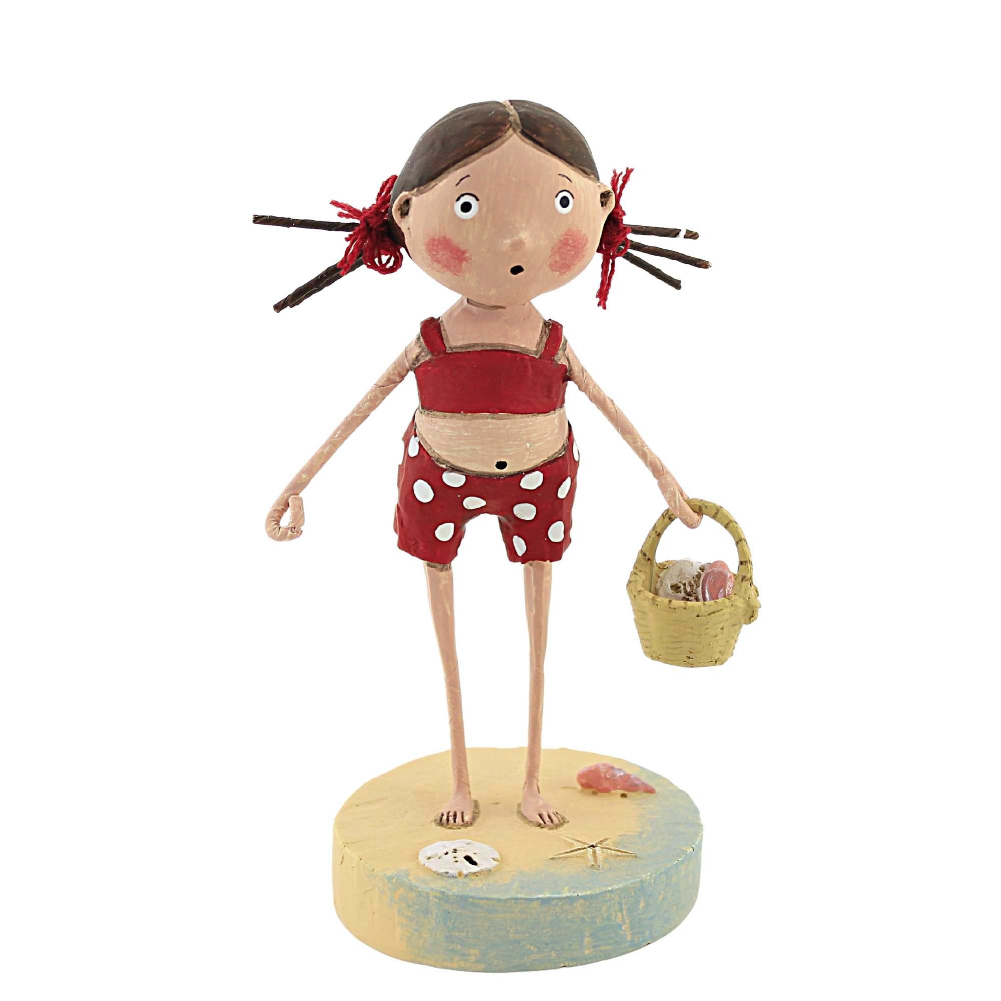 Shelly Is Selling Seashells At The Beach. She Is Searching The Beach For Some Seashells To Sell. Her Basket Is Not Full Enough To Stop Searching. She Is Wearing A Red And White Bathing Suit. Her Hair Is In Side Ponytails With Red Bows.