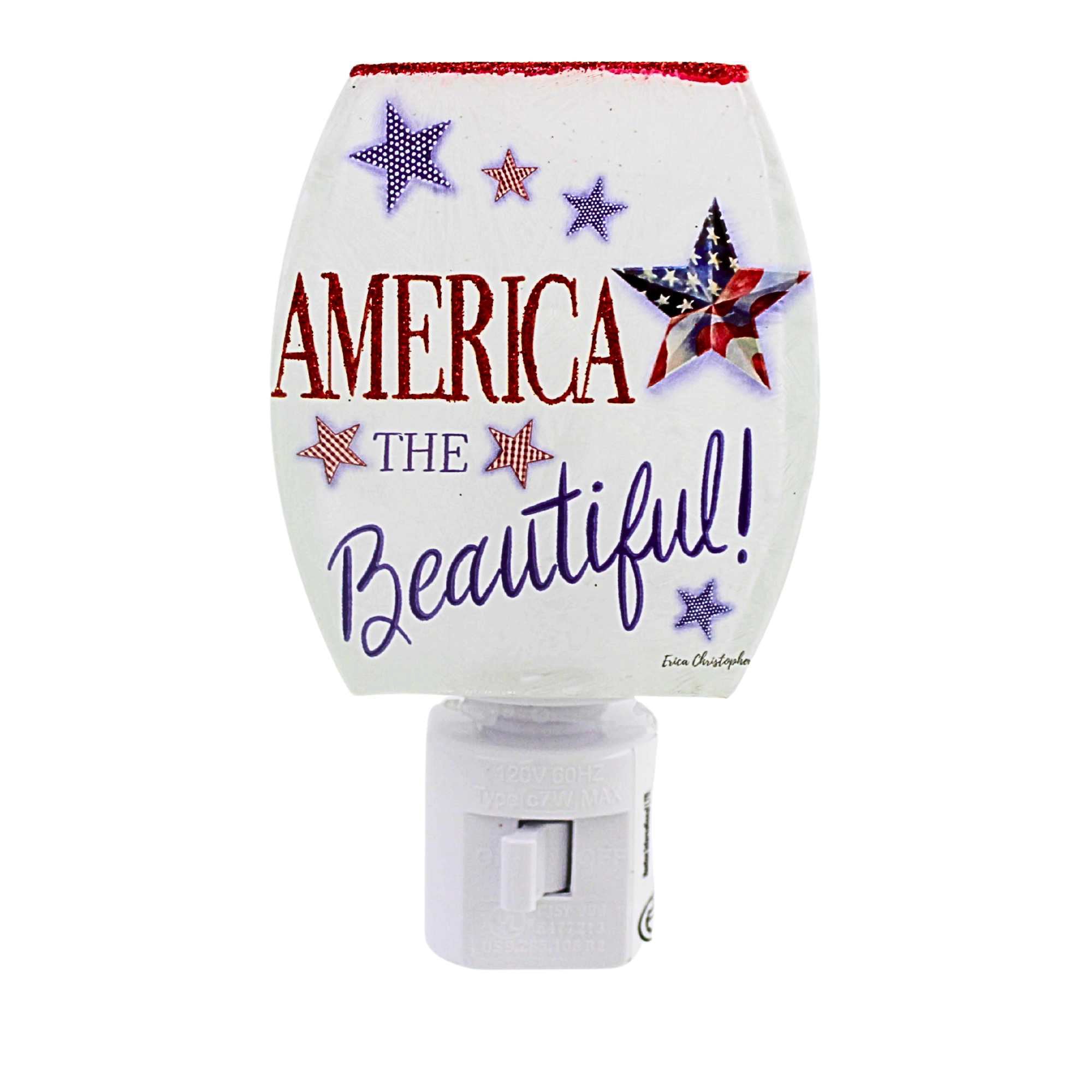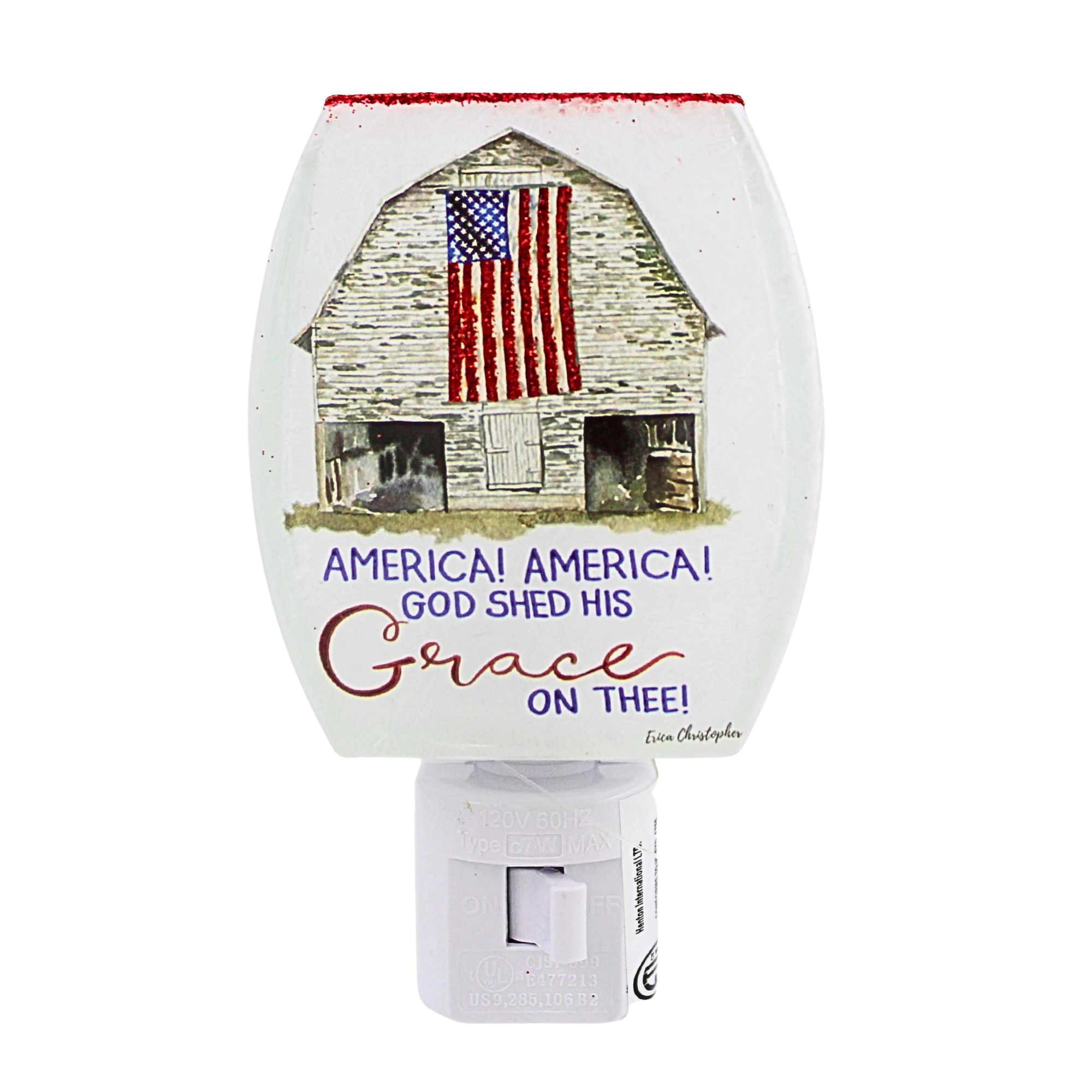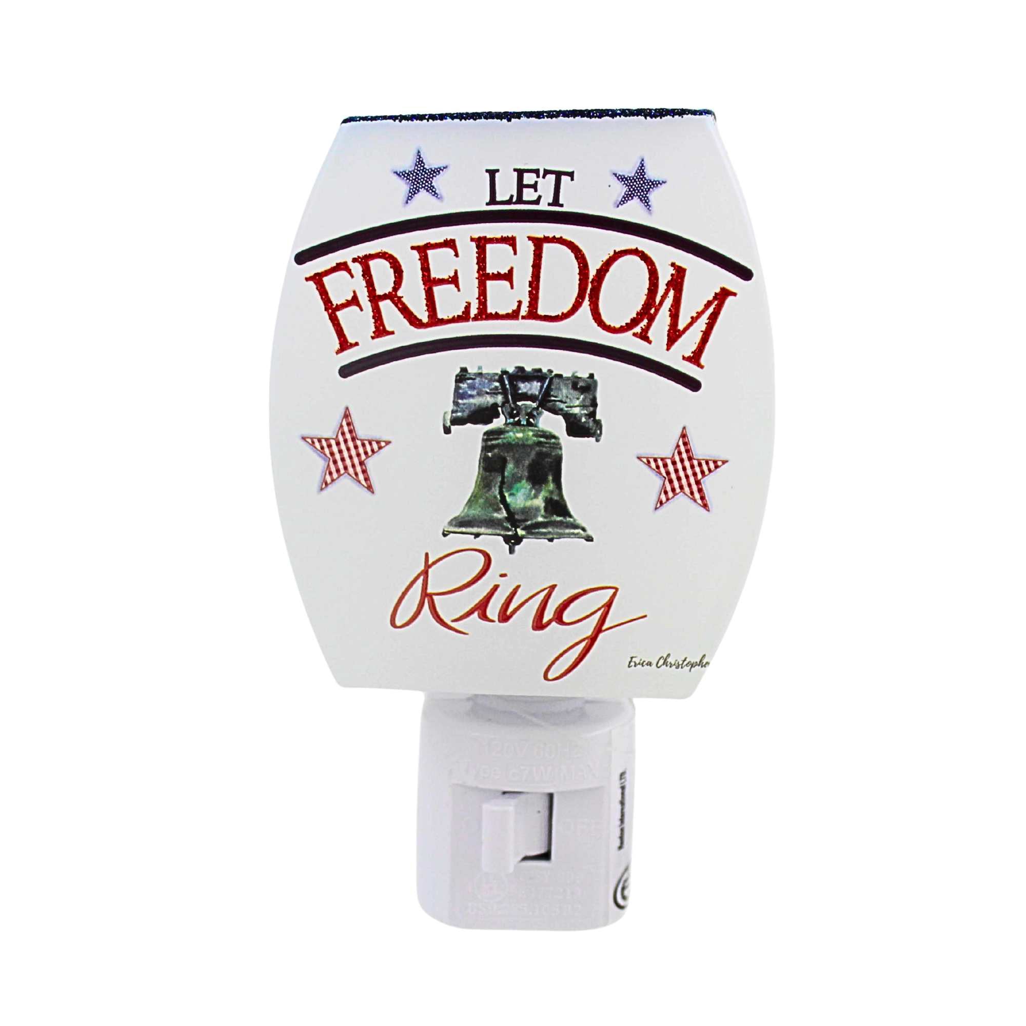Celebrate patriotic pride with the Stony Creek Independence Day Glass Night Light. This charming plug-in night light features a festive patriotic scene on glass, with a glitter-accented top edge that adds a sparkling touch. The soft glow provides gentle illumination, perfect for hallways, bedrooms, or holiday displays. An easy-to-use on and off switch on the front of the base makes it simple to enjoy this decorative light whenever you like.MATERIAL: